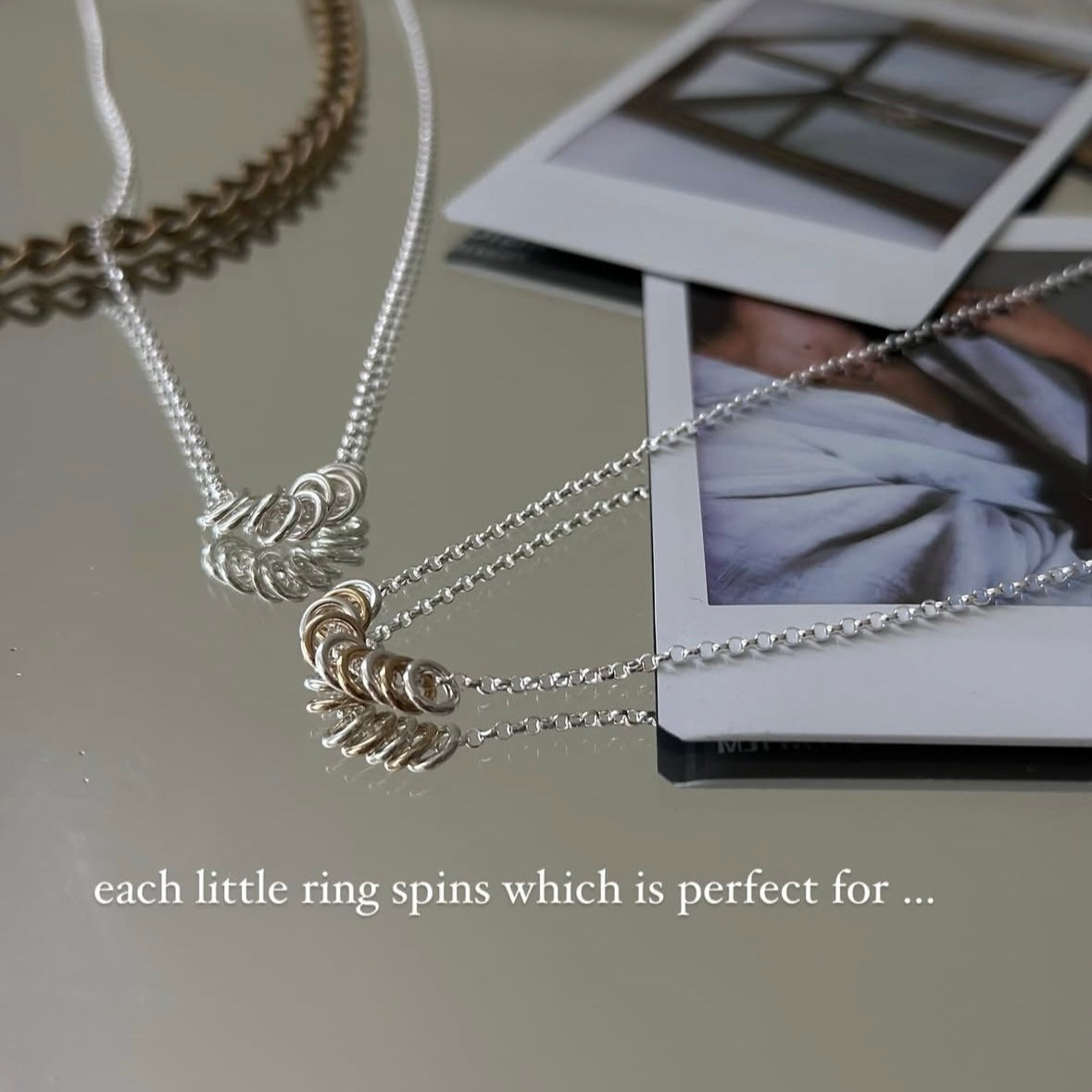 STYLE DETAILS ★ our beautiful signature chain adorned with lose silver and or silver and gold filled calm rings.