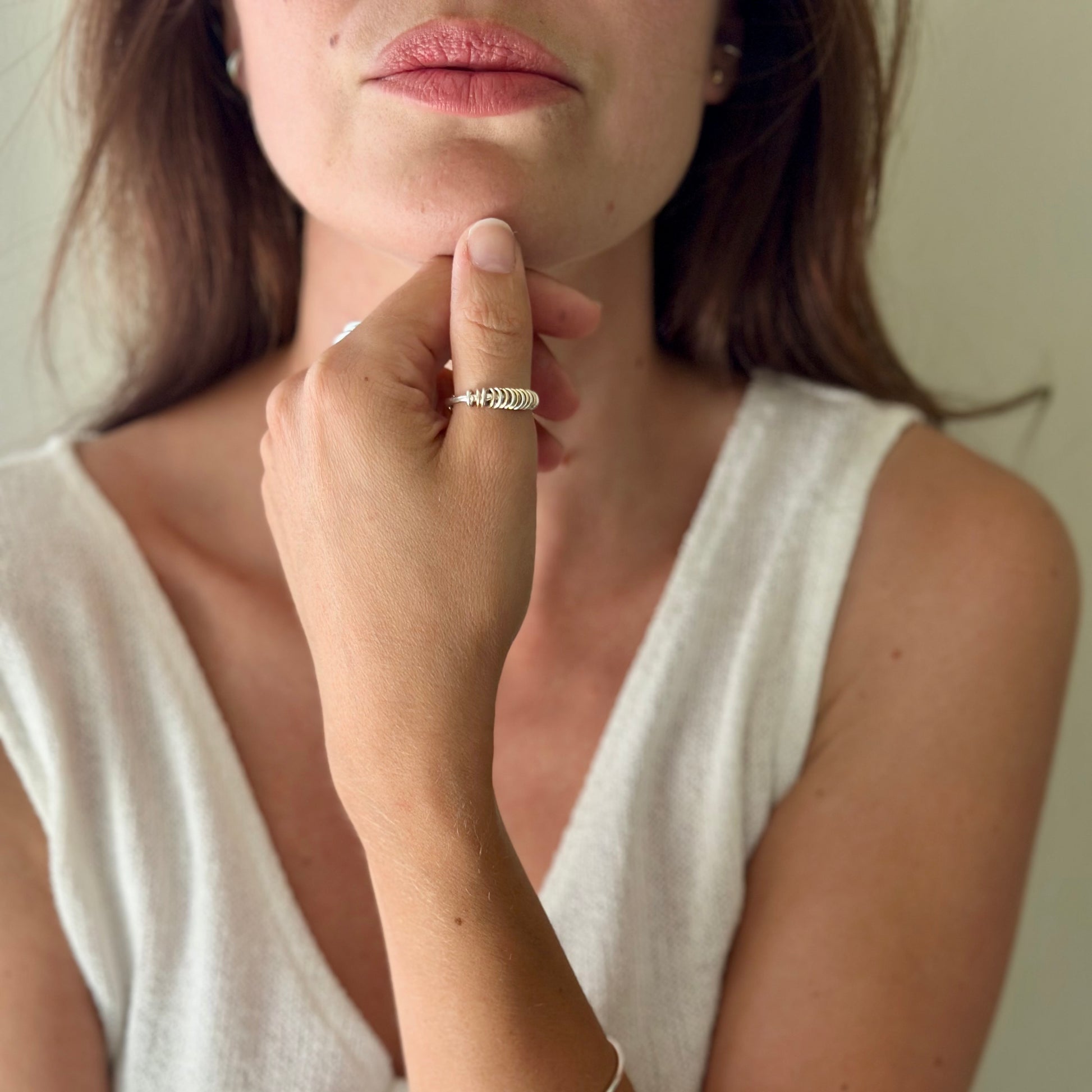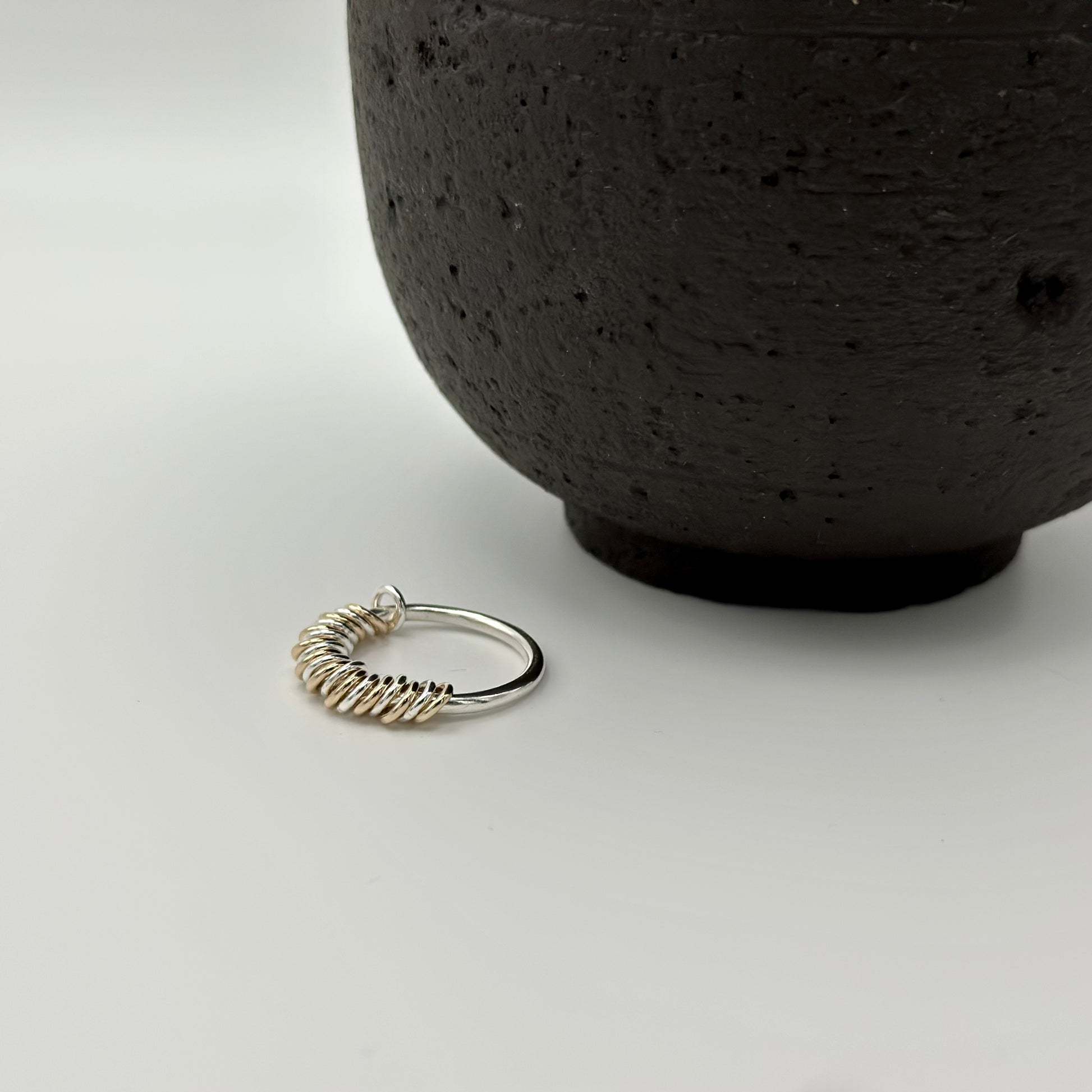 STYLE DETAILS ★ a gorgeous handcrafted ring adorned with lose silver and or silver and gold filled calm rings.