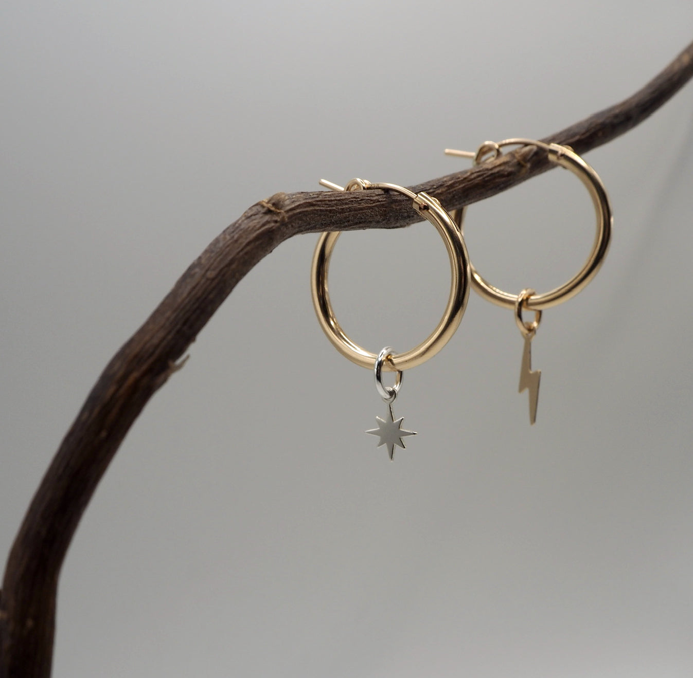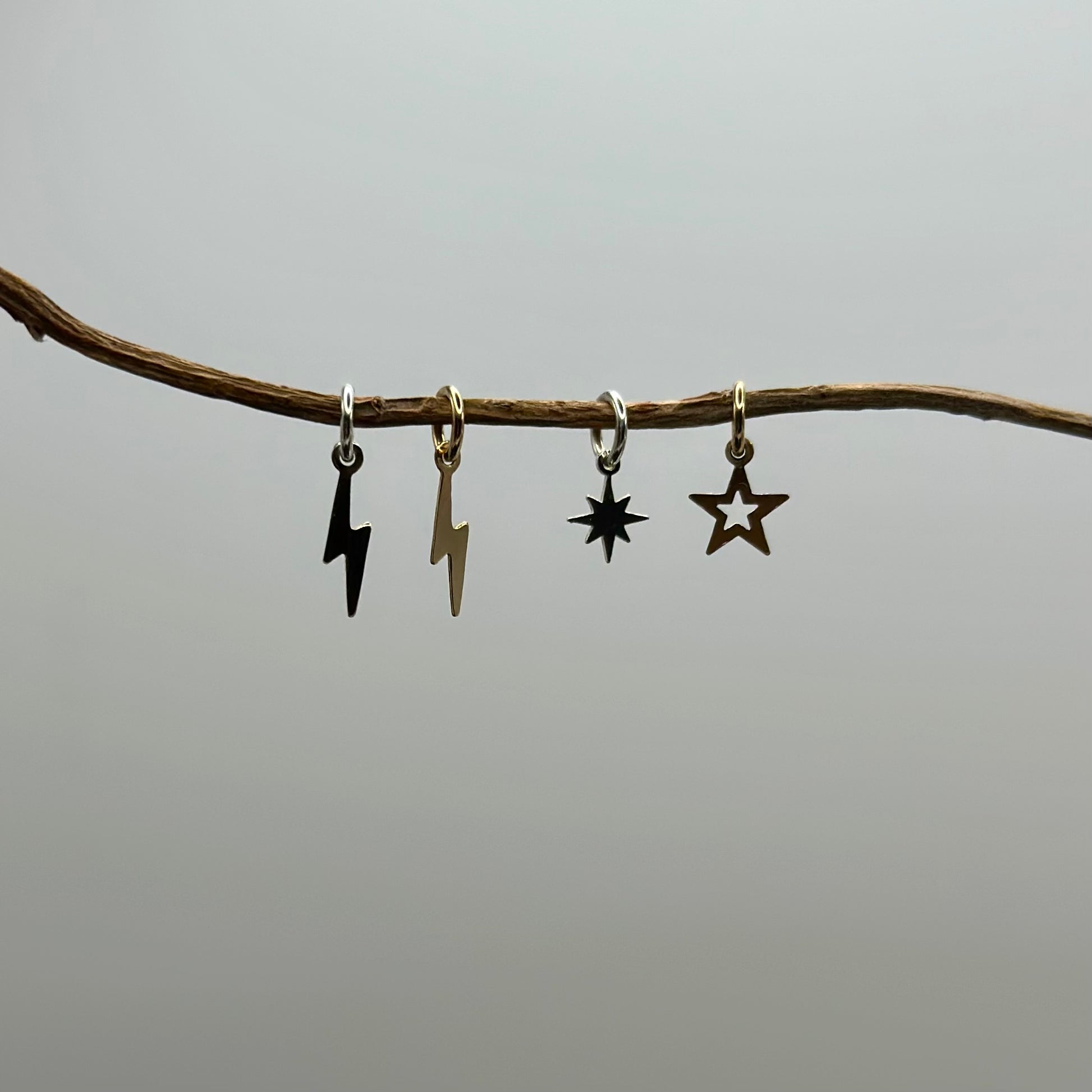 STYLE DETAILS ★ a beautiful collection of silver and gold filled 'NIGHT SKY' inspired curated charms to adorn your MINI, MIDI and SIGNET hoop earrings.