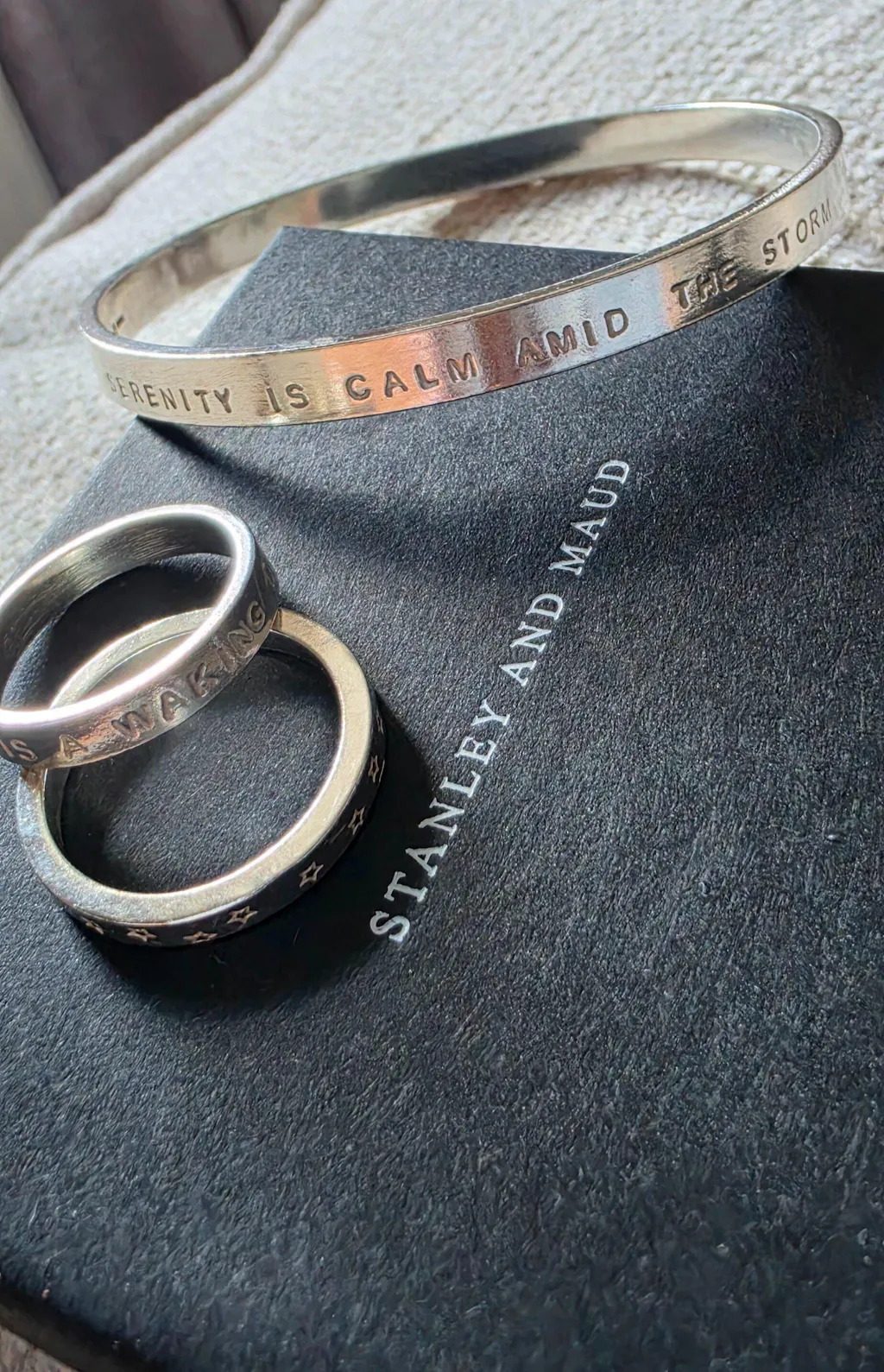 I bought a personalised Maxi Phase silver bangle, the Asterism necklace, two rings (one personalised), and I honestly couldn’t be happier. I’d spent years searching for the perfect bangle — something solid and weighty, but not too heavy — and this is exactly that. It's beautifully made and so comfortable to wear, as are all the pieces.