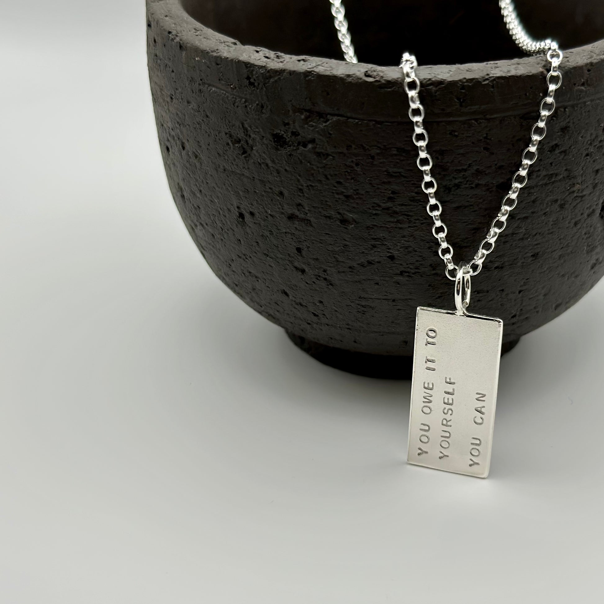 STYLE DETAILS ★ our beautiful maxi chain adorned with a bold handcrafted solid sterling silver or 9ct gold STRENGTH charm available to be personalised with parts of your story or words of empowerment...charm can also have an array of stamped stars as shown...use *** in personalisation box.