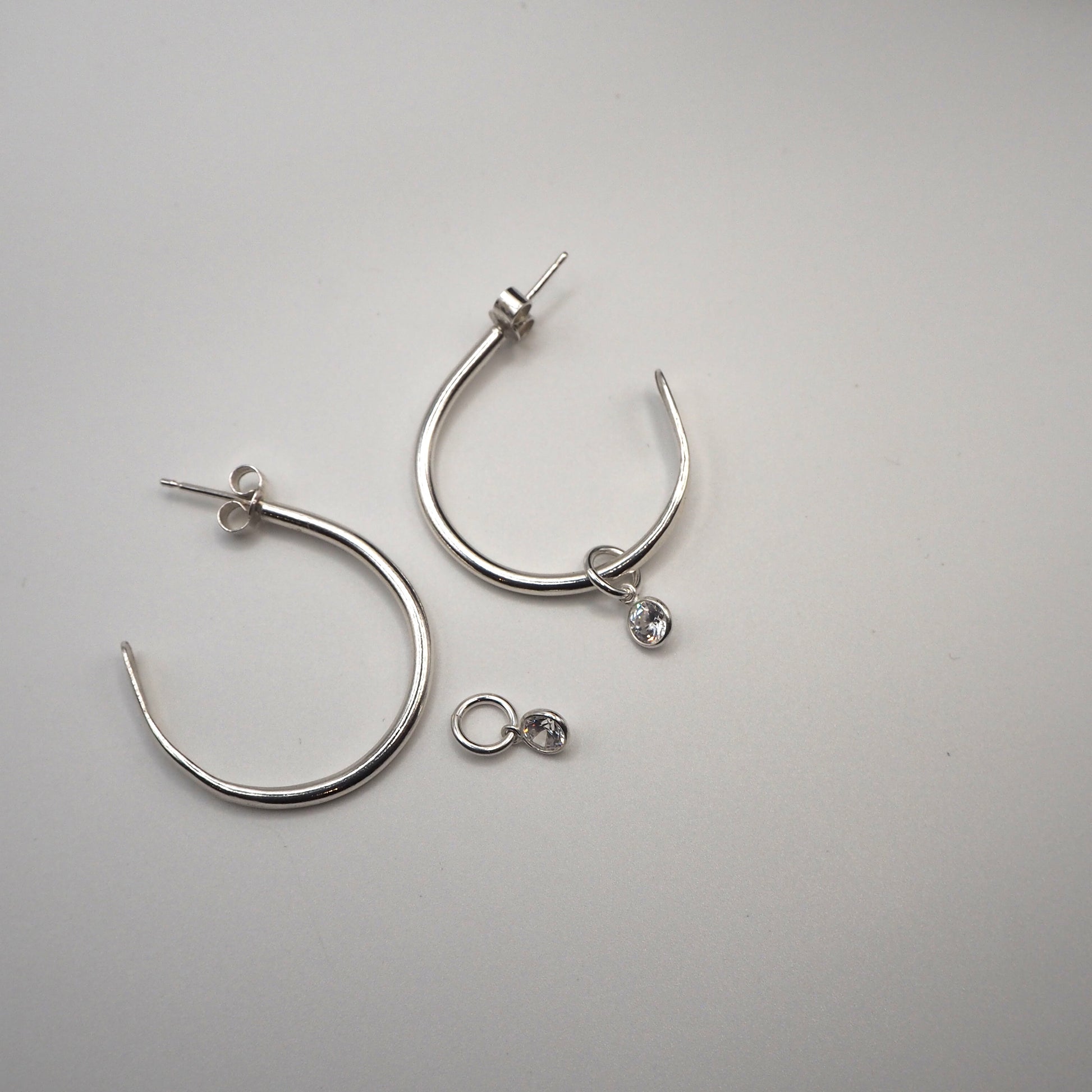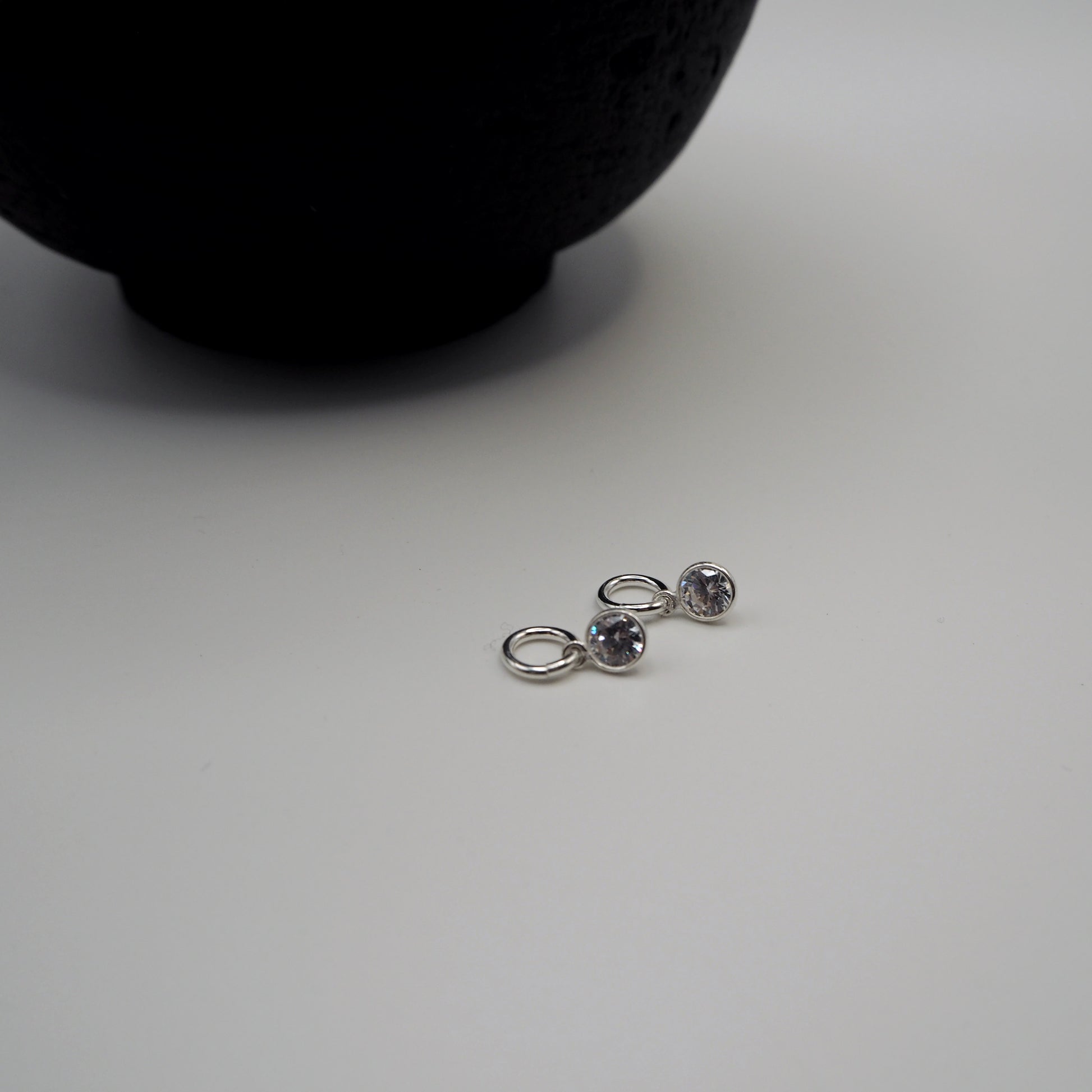 STYLE DETAILS ★ a single, simple sparkly silver cubic zirconia charm to adorn your MINI, MIDI and SIGNET hoop earrings...it compliments our WISH necklace perfectly! SM customers love a pair of these charms for their chosen hoops!
